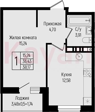 Продажа 1-комн. квартиры, 36.43 кв.м