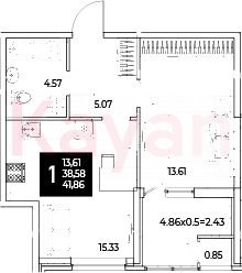 Продажа 1-комн. квартиры, 38.58 кв.м