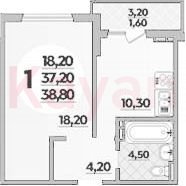 Квартира в ЖК «Парк у дома» (ВКБ-Новостройки. Краснодар) литер 7.2 очередь 1, Монолитный, 1 к.кв., 37.4 кв.м., 16/22, высота потолков: 2.75 м, жилая площадь: 18.2 кв.м., площадь кухни 10.3 кв.м.,