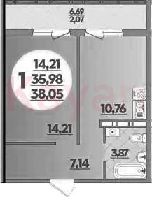 Продажа 1-комн. квартиры, 35.98 кв.м