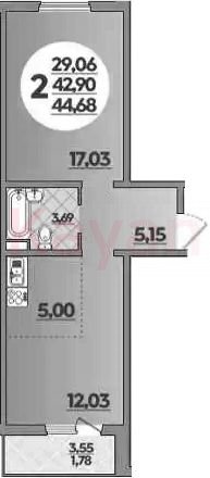 Продажа 1-комн. квартиры, 42.9 кв.м