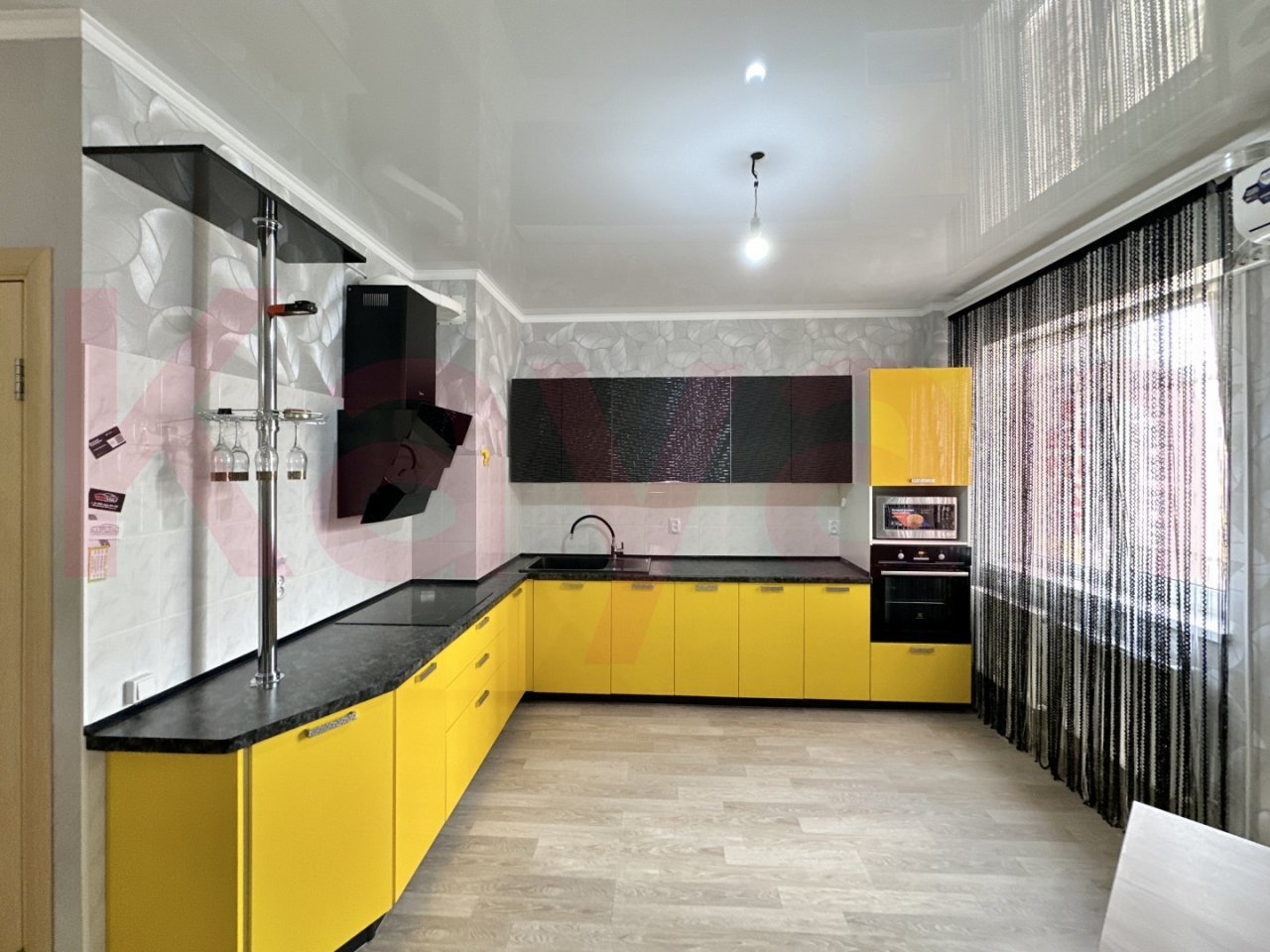 - Современная кухня-гостиная, оснащенная всей необходимой бытовой техникой (варочная поверхность, духовой шкаф, вытяжка, микроволновка, холодильник), станет центром вашего домашнего очага.