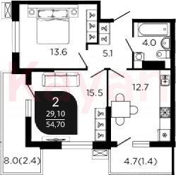Продажа 2-комн. квартиры, 52.5 кв.м
