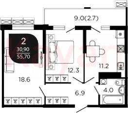 Продажа 2-комн. квартиры, 54.5 кв.м