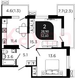 Продажа 2-комн. квартиры, 50.5 кв.м