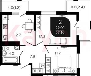 Продажа 2-комн. квартиры, 54.8 кв.м