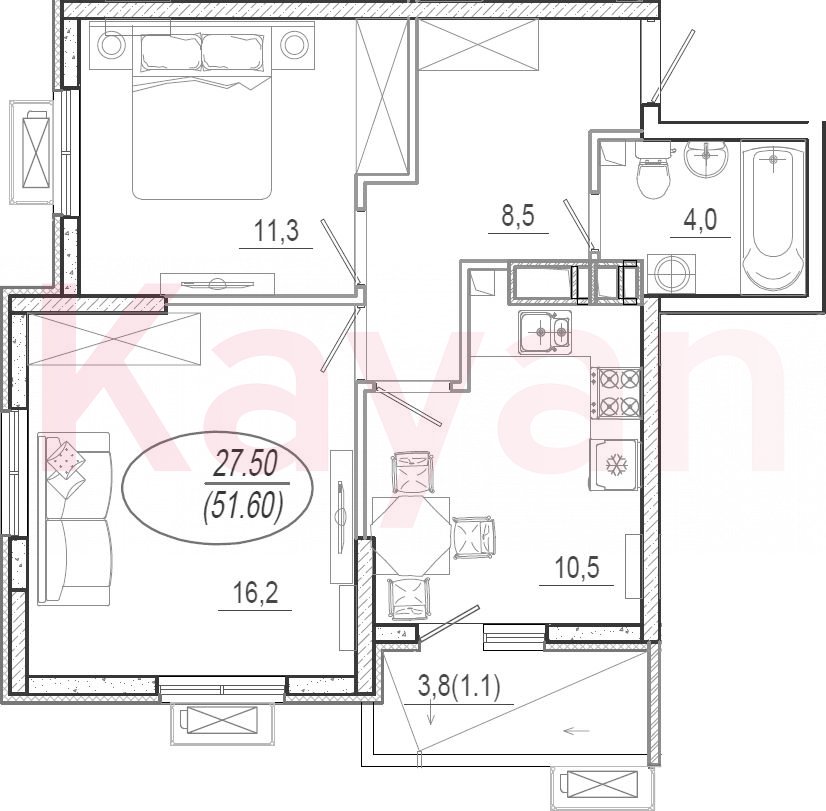 Продажа 2-комн. квартиры, 50.5 кв.м