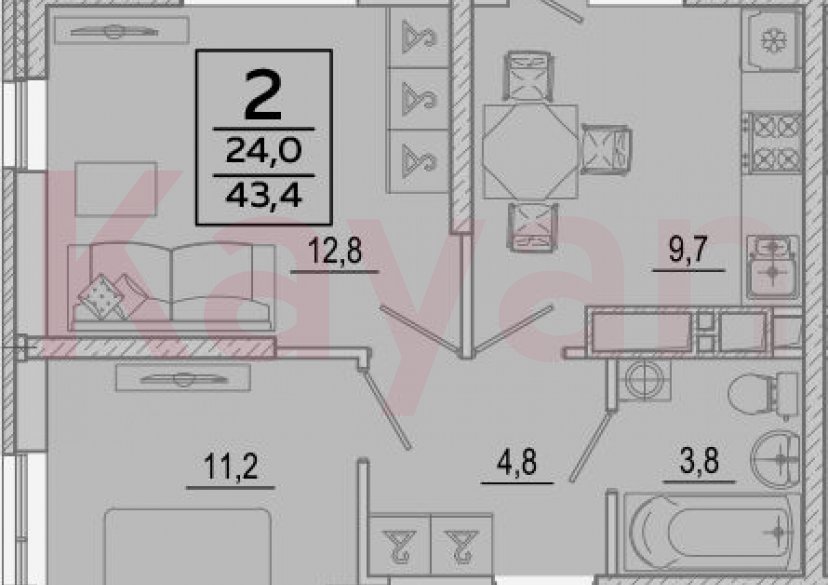 Продажа 2-комн. квартиры, 42.3 кв.м