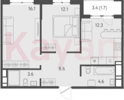 Продажа 2-комн. квартиры, 57.3 кв.м