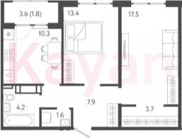 Продажа 2-комн. квартиры, 58.6 кв.м