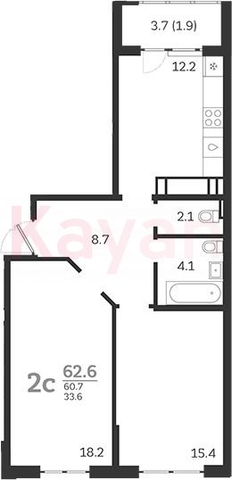 Продажа 2-комн. квартиры, 60.7 кв.м