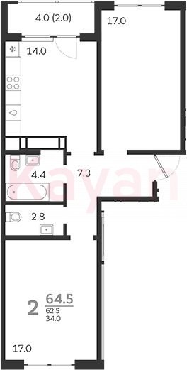 Продажа 2-комн. квартиры, 62.5 кв.м