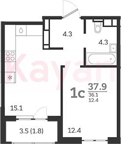 Продажа 2-комн. квартиры, 36.1 кв.м
