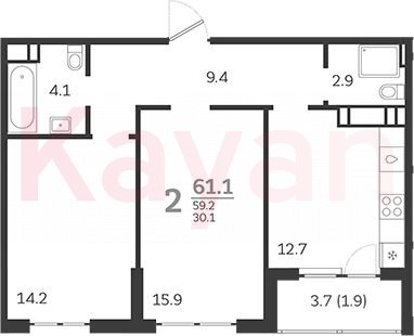 Продажа 2-комн. квартиры, 59.2 кв.м