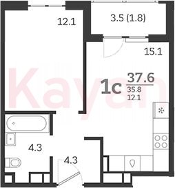 Продажа 2-комн. квартиры, 35.8 кв.м