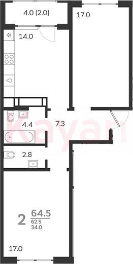Продажа 2-комн. квартиры, 62.5 кв.м
