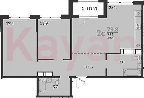 Продажа 2-комн. квартиры, 78.1 кв.м
