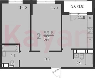 Продажа 2-комн. квартиры, 57.8 кв.м
