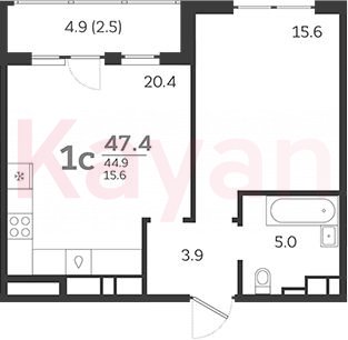 Продажа 2-комн. квартиры, 44.9 кв.м