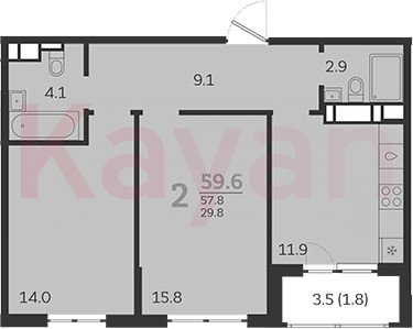 Продажа 2-комн. квартиры, 57.8 кв.м