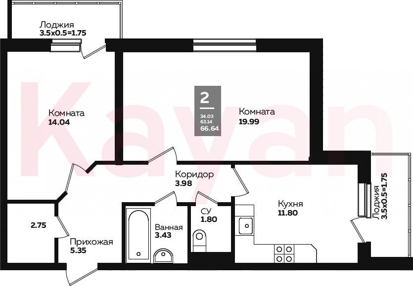 Продажа 2-комн. квартиры, 60.2 кв.м