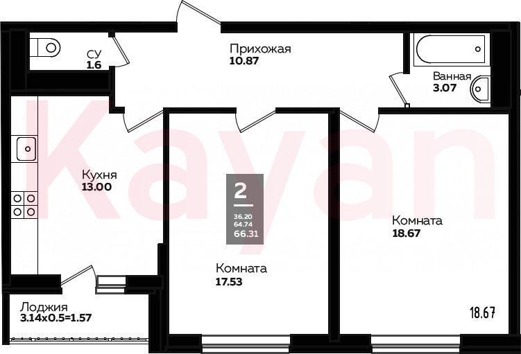 Продажа 2-комн. квартиры, 63.33 кв.м