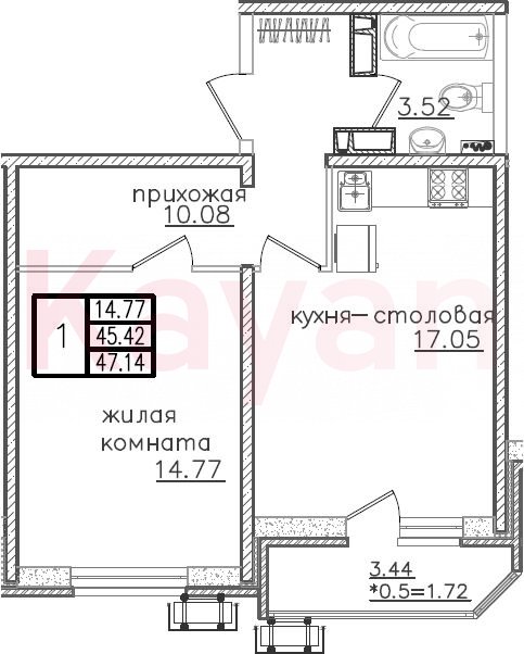 Продажа 2-комн. квартиры, 45.42 кв.м