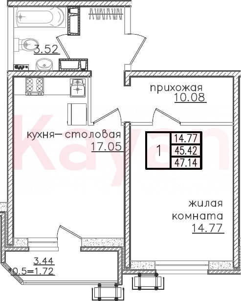 Продажа 2-комн. квартиры, 45.42 кв.м