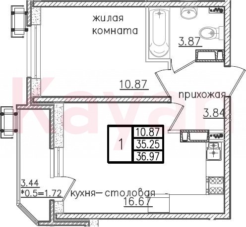 Продажа 2-комн. квартиры, 35.25 кв.м