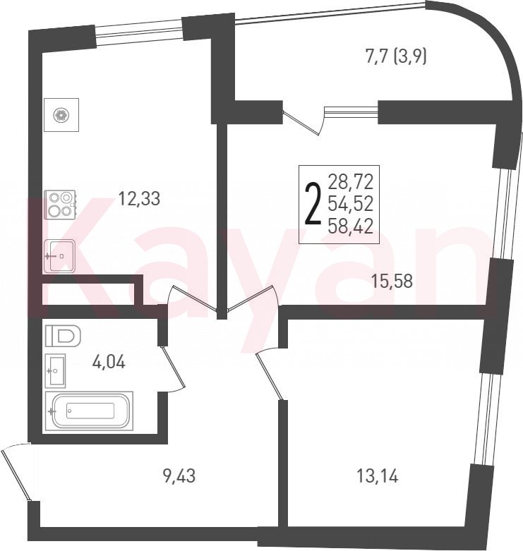 Продажа 2-комн. квартиры, 56 кв.м