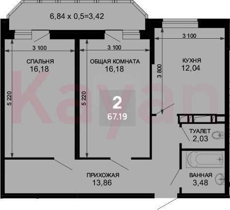 Продажа 2-комн. квартиры, 63.77 кв.м