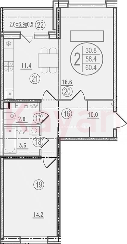 Продажа 2-комн. квартиры, 58.4 кв.м