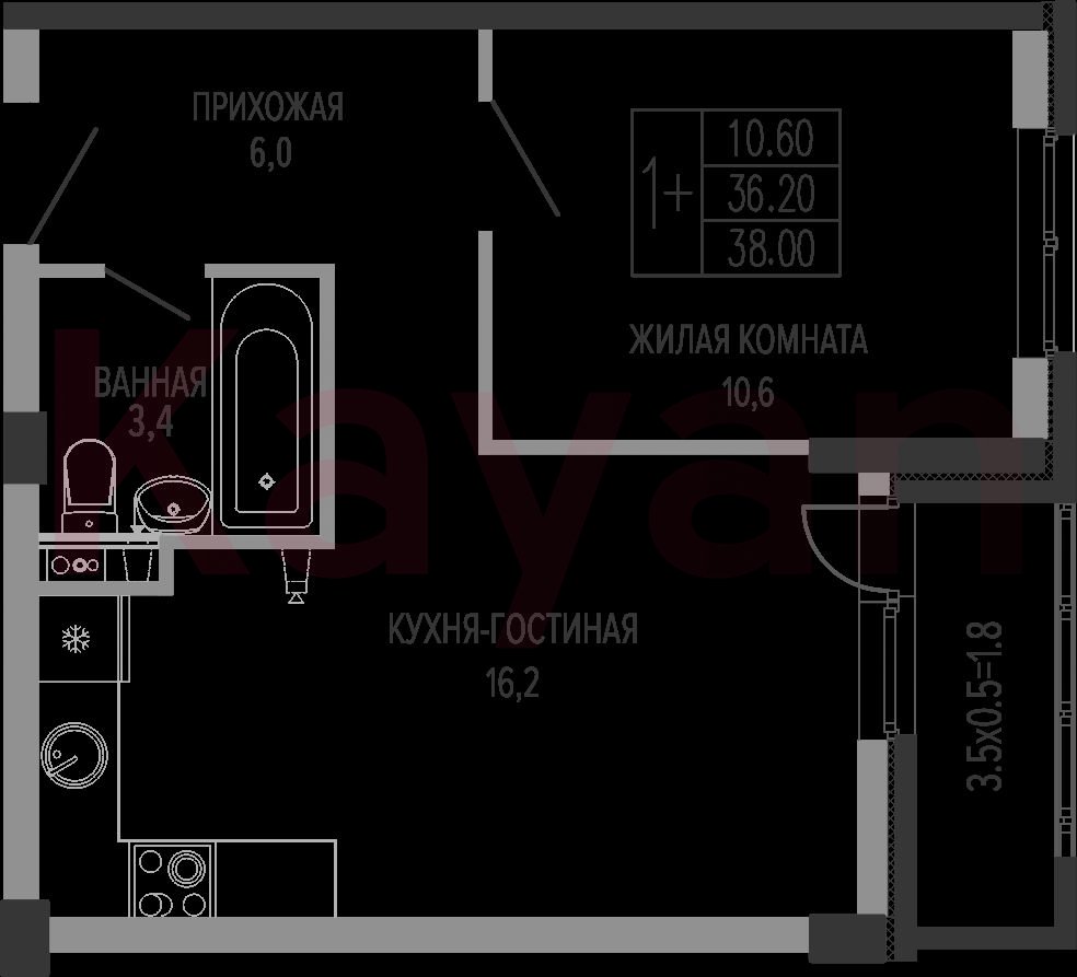 Продажа 2-комн. квартиры, 36.2 кв.м