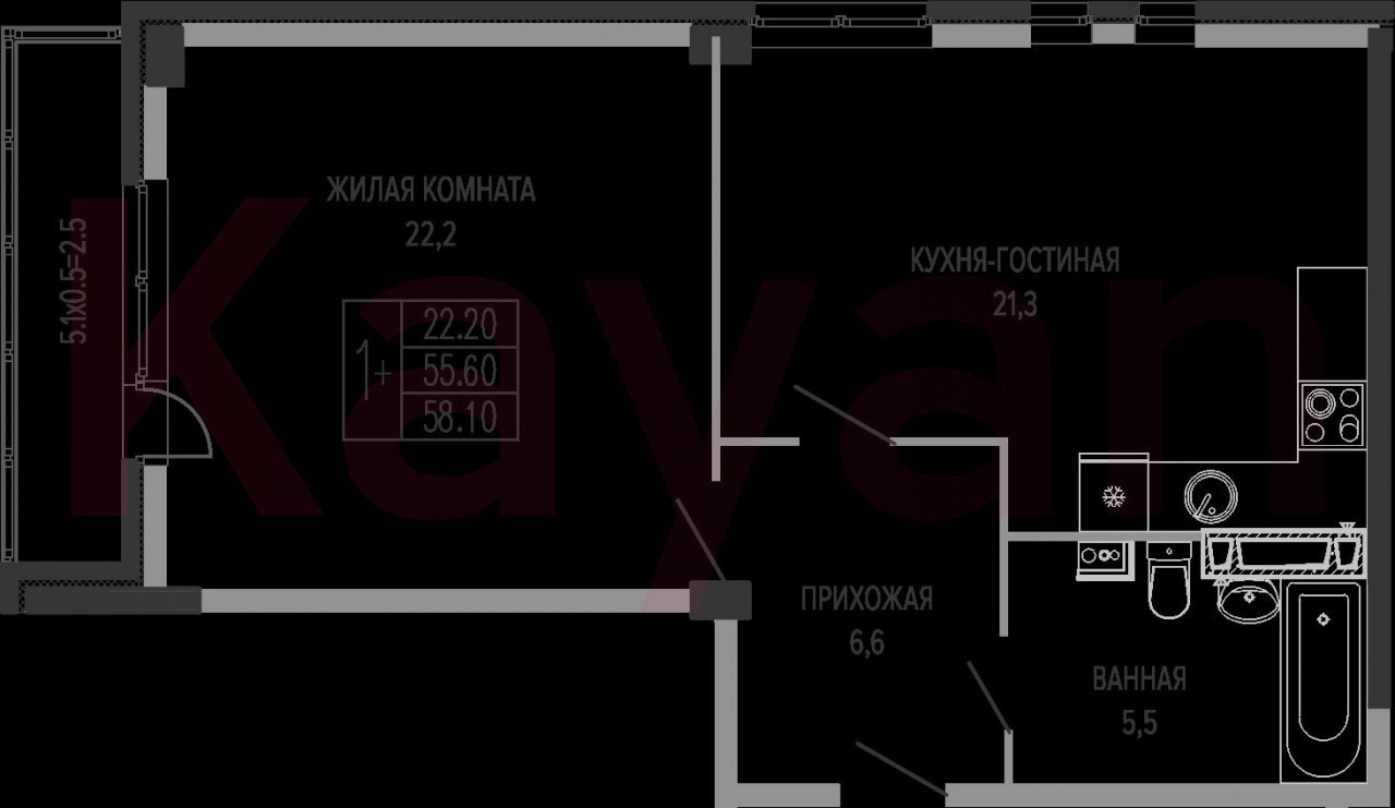 Продажа 2-комн. квартиры, 55.6 кв.м