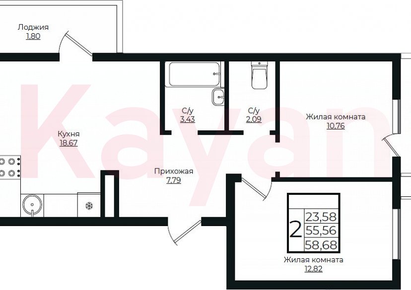 Продажа 2-комн. квартиры, 53.32 кв.м