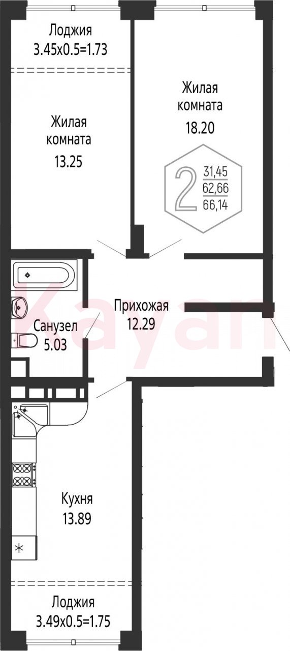 Продажа 2-комн. квартиры, 62.66 кв.м