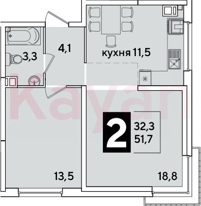 Продажа 2-комн. квартиры, 51.7 кв.м