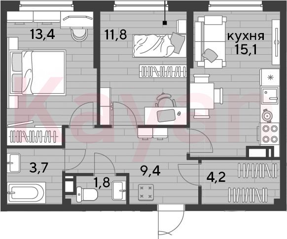 Продажа 2-комн. квартиры, 59.4 кв.м