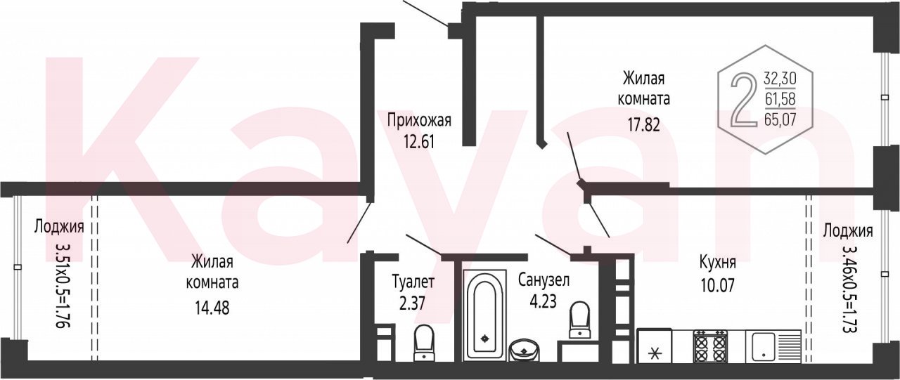 Продажа 2-комн. квартиры, 61.58 кв.м