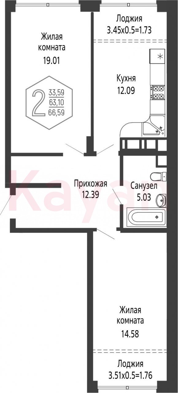 Продажа 2-комн. квартиры, 63.1 кв.м