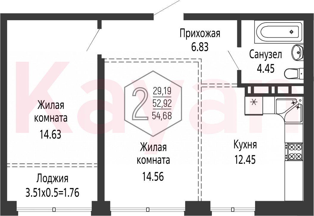 Продажа 2-комн. квартиры, 52.92 кв.м