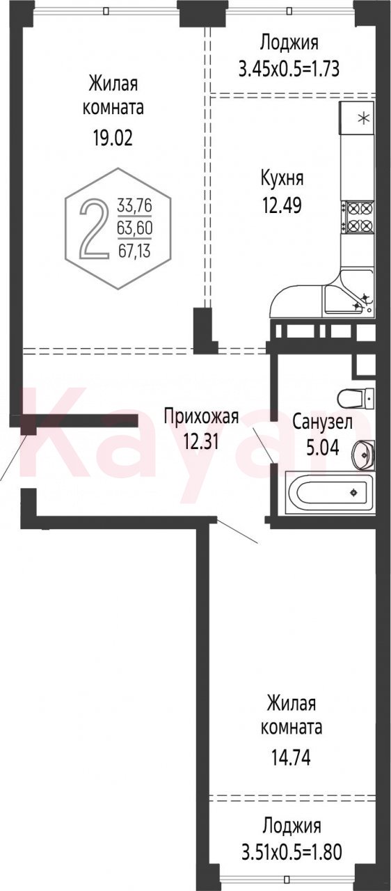 Продажа 2-комн. квартиры, 63.6 кв.м