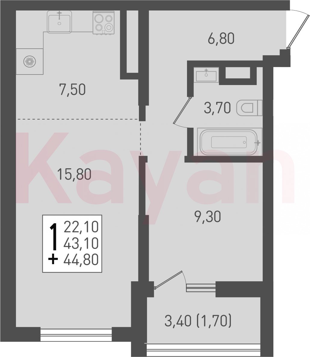 Продажа 2-комн. квартиры, 43.2 кв.м