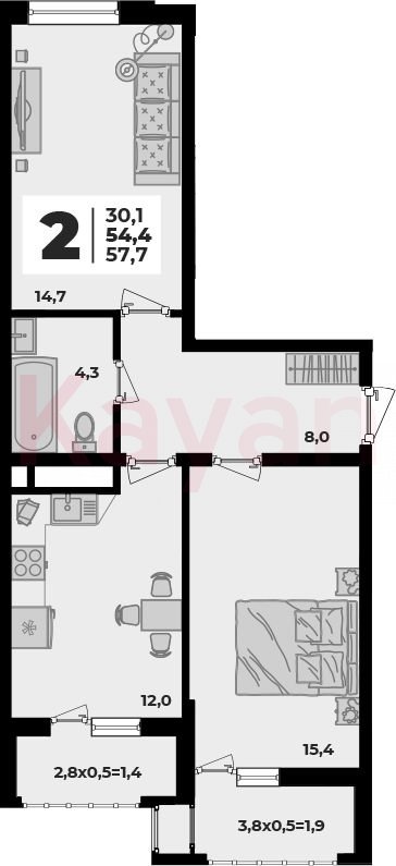 Продажа 2-комн. квартиры, 54.4 кв.м