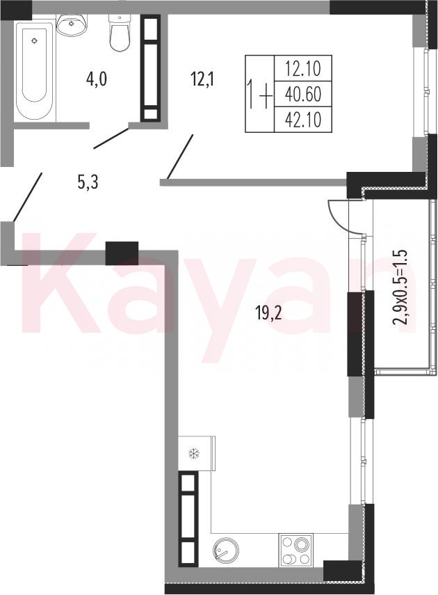 Квартира в ЖК «Екатерининский парк» (ЕкатеринодарИнвестСтрой) литер 5 очередь 2, Кирпично-монолитный, 2 к.кв., 40.6 кв.м., 2/15, высота потолков: 2.85 м, жилая площадь: 12.1 кв.м., возможна ипотека, возможна военная ипотека, площадь кухни 19.2 кв.м.,