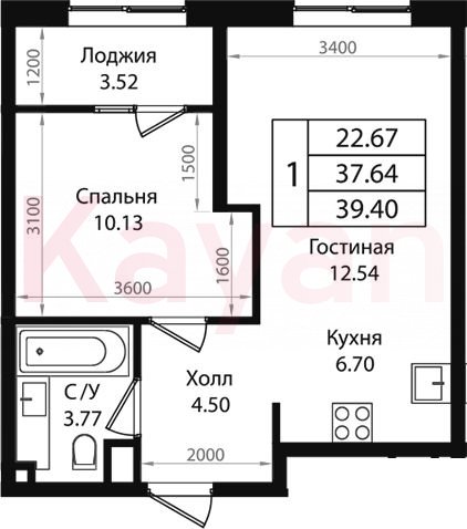 Продажа 2-комн. квартиры, 37.64 кв.м