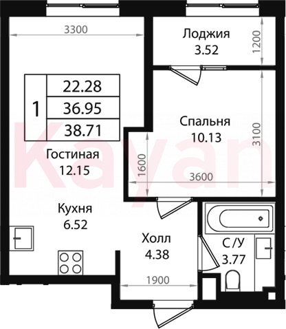 Продажа 2-комн. квартиры, 36.95 кв.м