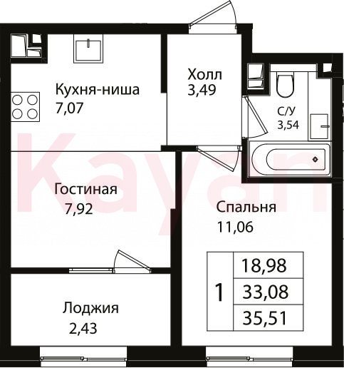 Продажа 2-комн. квартиры, 33.08 кв.м