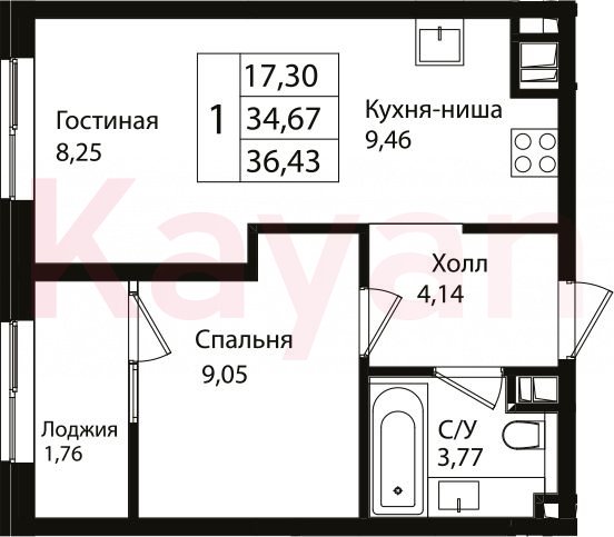 Продажа 2-комн. квартиры, 34.67 кв.м