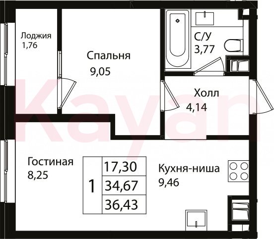Продажа 2-комн. квартиры, 34.67 кв.м